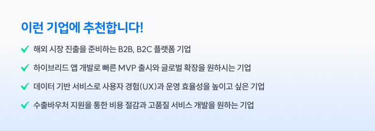 ✅ 하이브리드 앱 개발로 빠른 MVP 출시와 글로벌 확장을 원하시는 기업